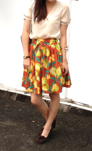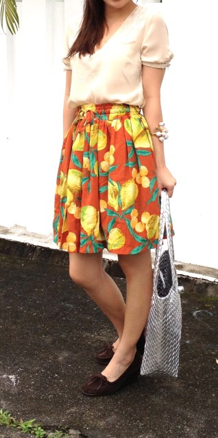 Another bright lemon day out in my vintage lemon skirt, silver basket bag and super comfy Aerosole shoes! Their shoes are so comfortable but not always great design-wise so I was so happy I found these that I got them in two colours. I also have these in Green snake-skin texture 🙂 Not forgetting my White bauble cuff!