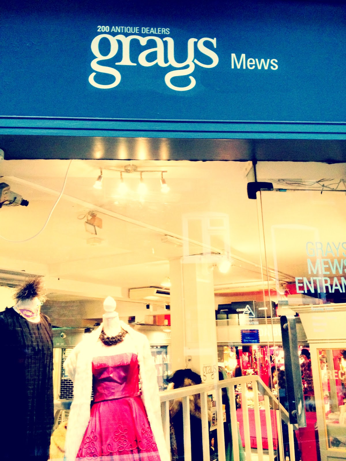 AND SO… my search for vintage on my last few days brought me to GRAYS MEWS which had alot of fine vintage jewellery collectibles in silver and real gold, but of all of the 200 shops, only a few had the kind of costume vintage brooches that I wanted to buy. But Sadly, I can’t find the namecard of the shop and I totally forgot the nice lady’s name! 😦 You can find her shop in the basement and you have to walk down this stairway right at the corner HERE! >>>