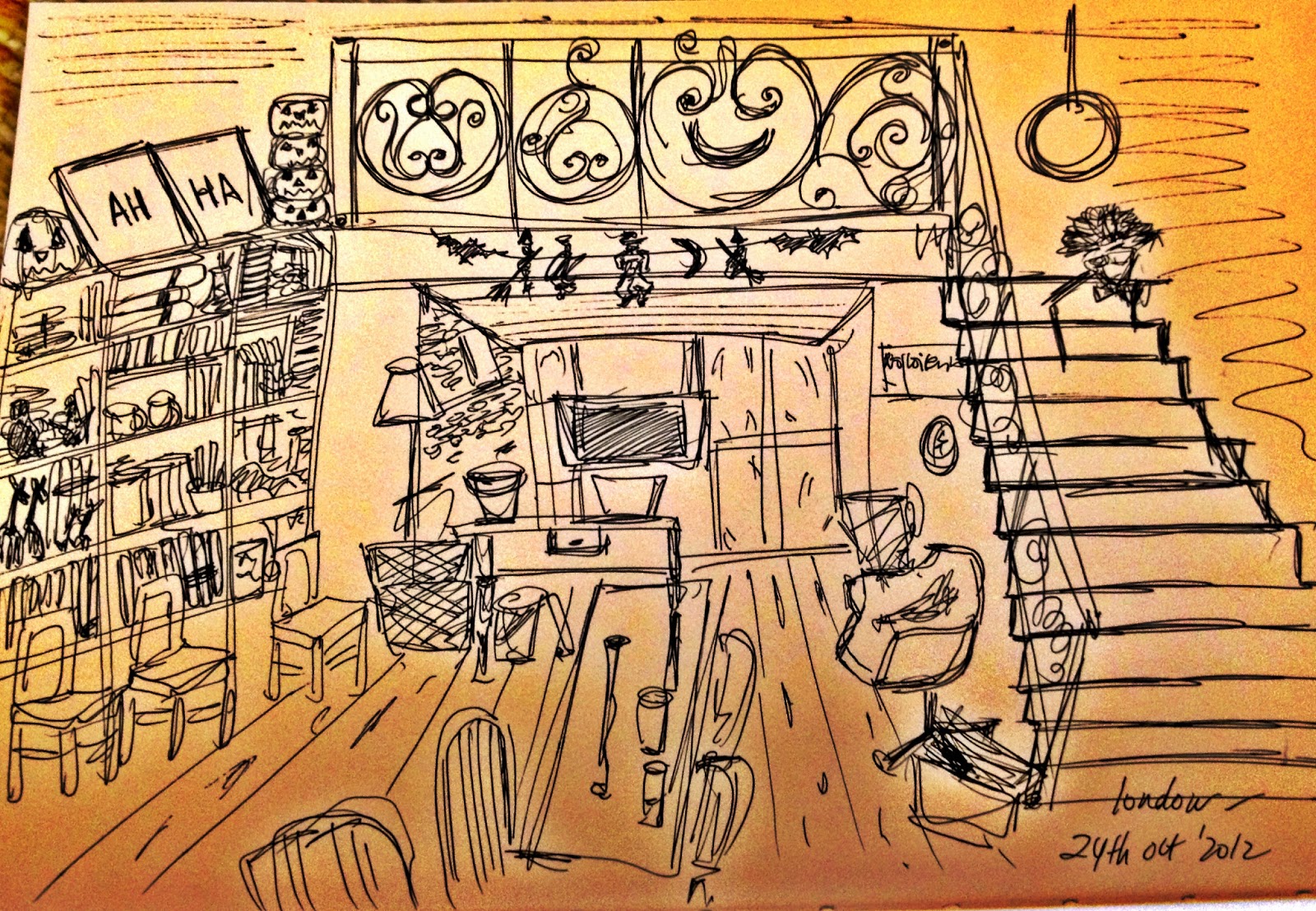 And so when i came back to the hotel room, i started reading or more like looking at the pictures of the book and got so inspired to draw one of their rooms.