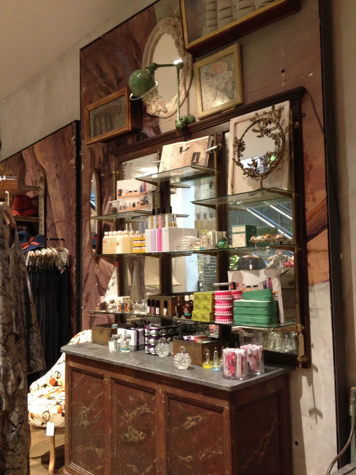 The way the entire store was done up and displayed just really makes you feel like you are in vintage wonderland. They used antique cupboards, doors, mirrors, baskets, door knobs, everything and anything to display their good and it was all done up as if you were in an artist’s home! I really wanted to LIVE THERE so bad. I think I “lingered” around for close to 2 hours just admiring everything. It wasn’t so much the clothing or the things they sold but more of how the place was done up. It does also make you feel like buying everything! I walked away with A BOOK and a pair of orange jeans *only* . I really wanted to buy everything!!!!