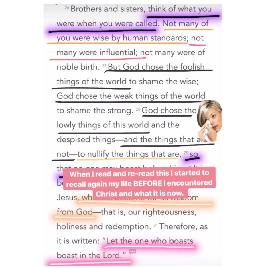 Body was tired because I had no self control. I would drink an entire bottle of wine and was addicted to cigarettes and the high of gambling because I did not have that spirit of truth living inside of me. This spirit of truth is my friend. Daily, he talks to me and walks with me. Daily, he whispers ever so gently in my heart , “that’s enough time for bed now… and he doesn’t just stop there … he gives me the power and grace to do so.”